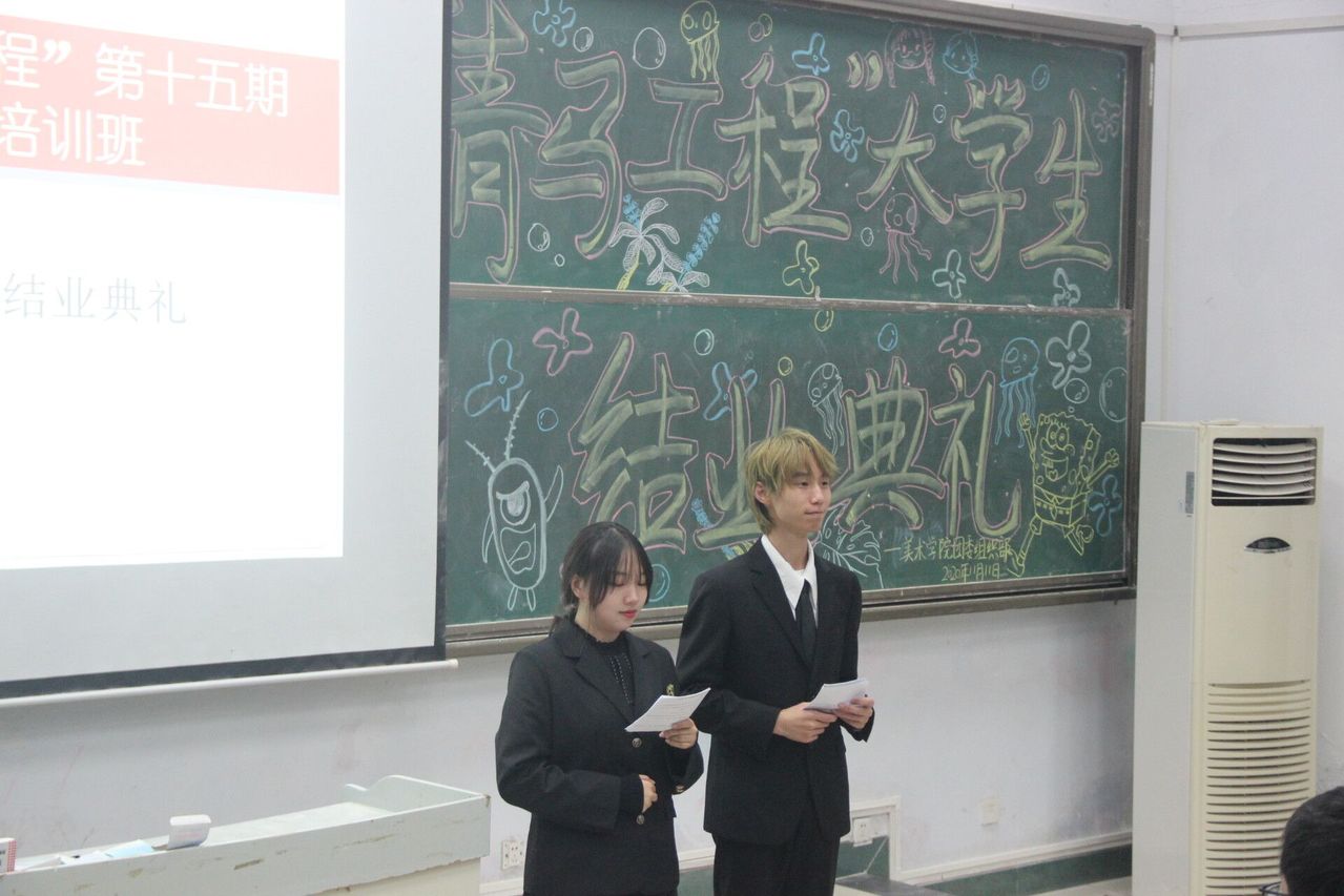 首先,主持人向顺利结业的“青马工程”培训学员表示祝贺,向一直支持“青马工程”的各学院、各位老师表示感谢,并总结了同学们在青马工程中的收获和成长。